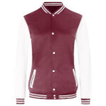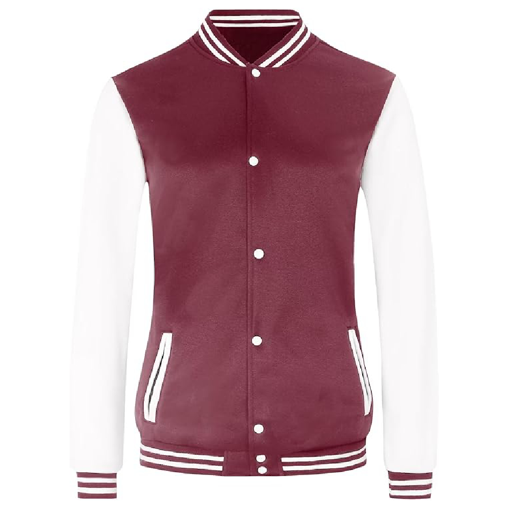 ✔ Design: Contrasting white sleeves and striped accents for a signature varsity look