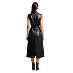 Women’s Black Faux Leather Sleeveless Maxi Trench Long Coat With Belt