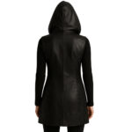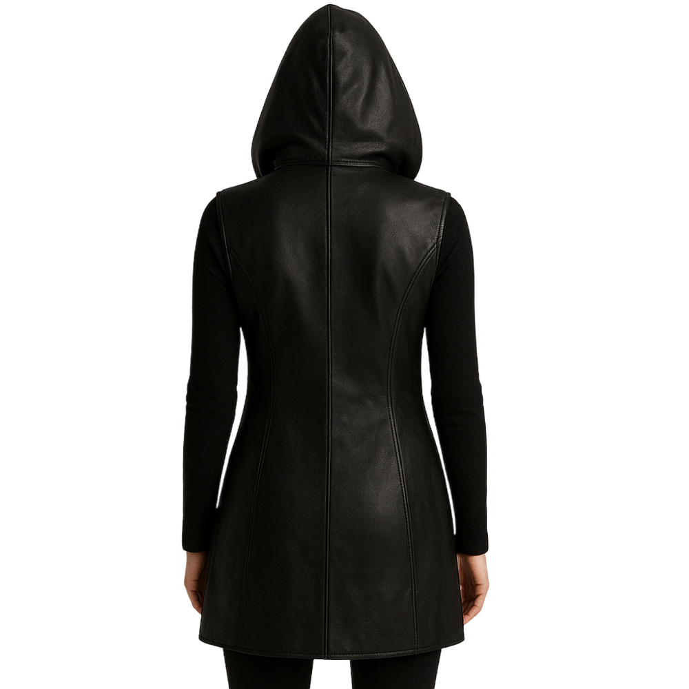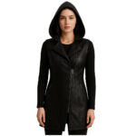 Women’s Black Leather Hooded Moto Vest – Assassin Longline Edition