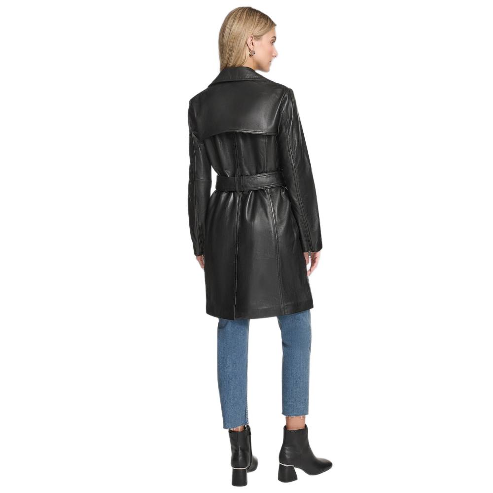 Women’s Black Mid-Length Genuine Leather Trench Coat