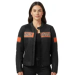 Ride with confidence and bold style in the Women’s Black & Orange Performance Riding Biker Jacket. Designed for modern riders, this jacket combines a sleek black base with vibrant orange accents for a dynamic, high-visibility look. Crafted from durable, high-quality materials, it offers a flattering feminine fit while ensuring comfort and flexibility on every ride. Whether you’re on the road or styling it for casual wear, this jacket delivers performance, protection, and standout fashion in one powerful design.