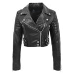 Upgrade your fashion game with this Black Slim Fit Short Biker Leather Jacket – a bold statement piece for the modern woman!