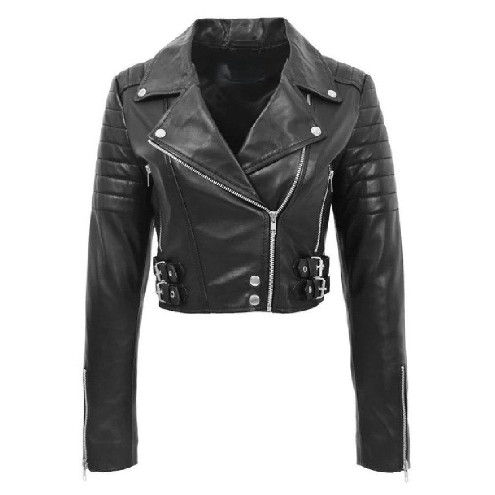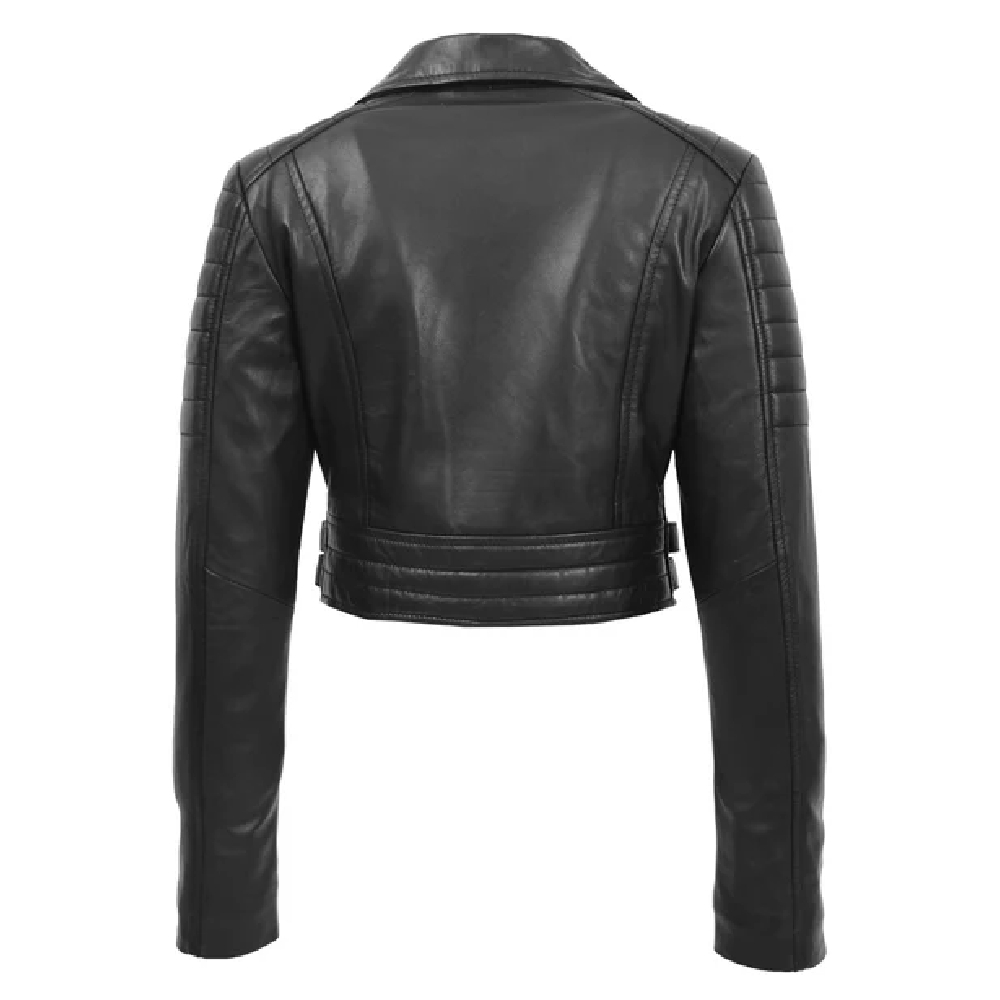 Women’s Black Slim Fit Short Biker Leather Jacket – Premium Lambskin