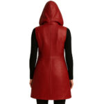 Women’s Blood Red Leather Hooded Long Vest – Little Red Riding Hood Reimagined