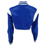 Women’s Blue Genuine Sheepskin Crop Baseball Varsity Bomber Leather Jacket