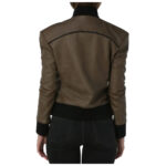 Designed with a short, fitted silhouette, it highlights your figure while maintaining a laid-back bomber look. Whether paired with jeans for casual outings or layered over a dress for a chic edge, this jacket elevates any outfit effortlessly.