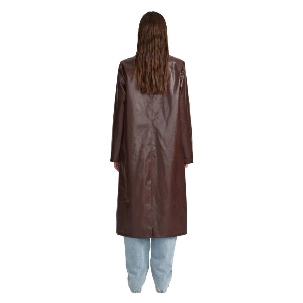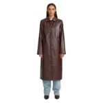 Women’s Dark Burgundy Vegan Leather Trench Long Coat