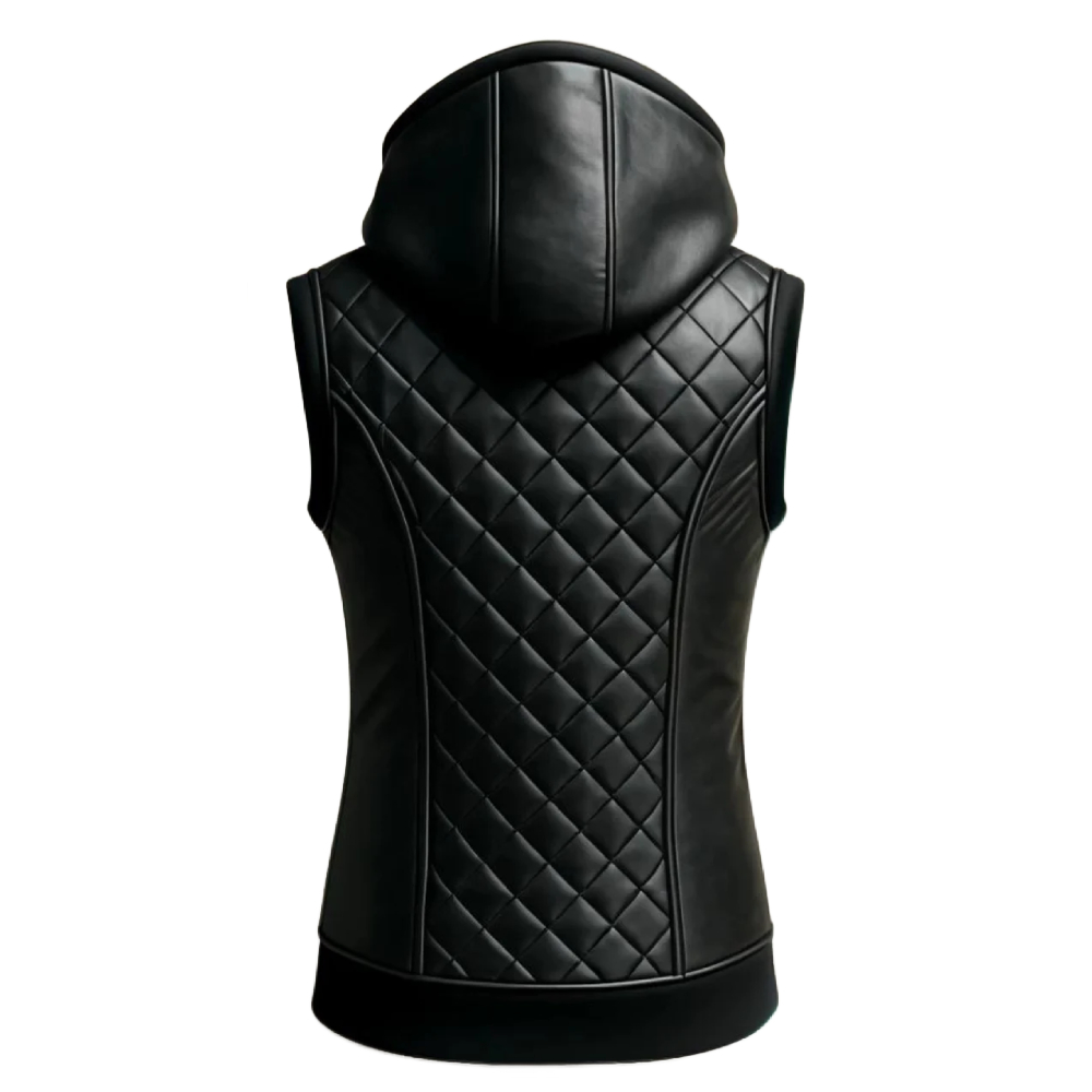 Step up your fashion game with this black quilted leather vest hooded jacket – the ultimate blend of style, comfort, and functionality!