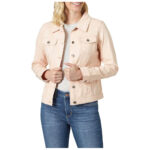Home ALL WOMEN'S JACKETS Jeans Jacket Women’s Fashion Stylish Button-Up Cropped Peach Denim Jacket With Pockets