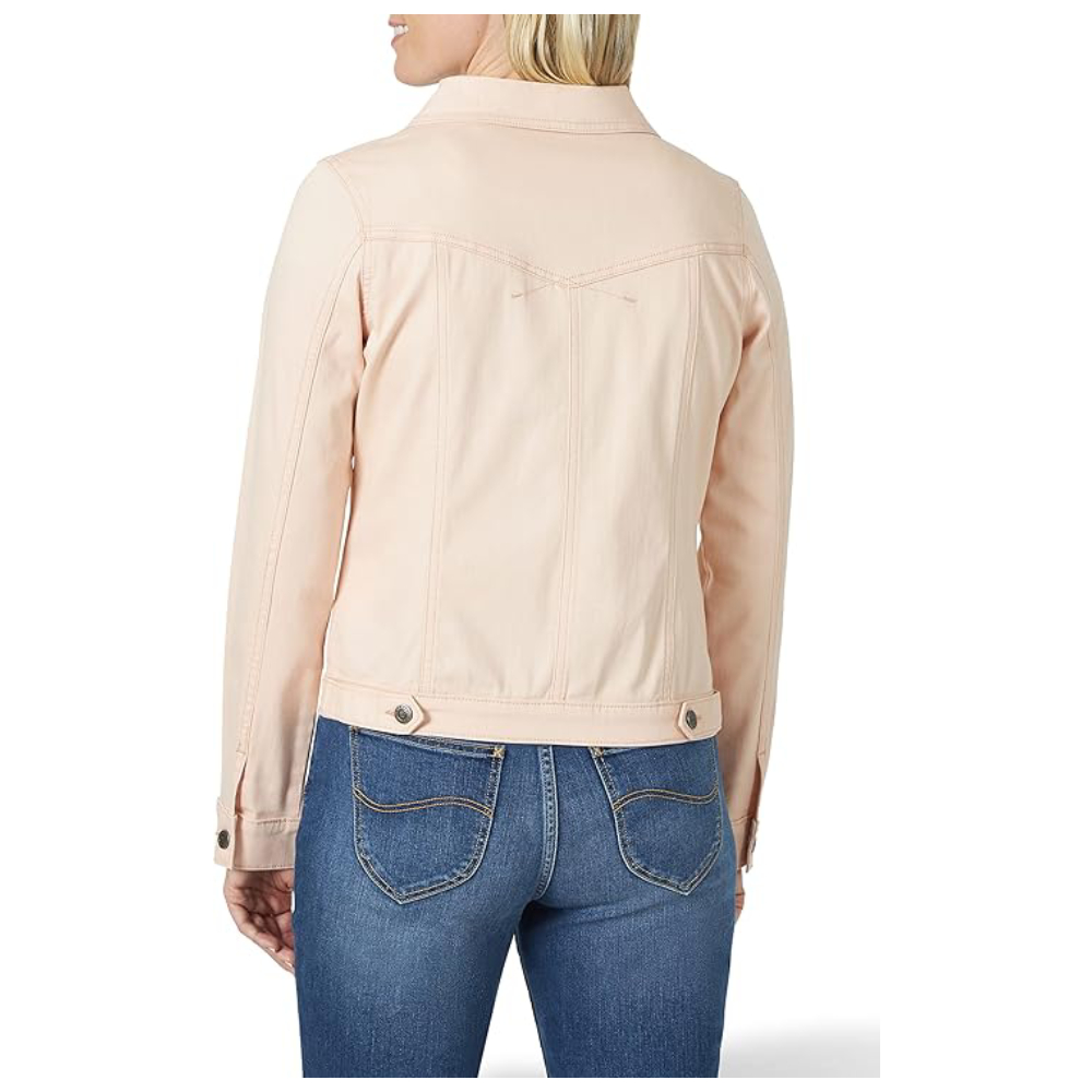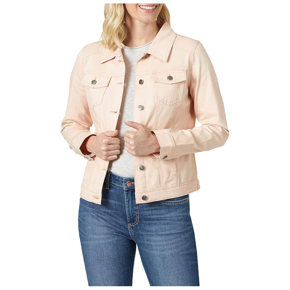 Step up your style game with this peach-colored cropped denim jacket—effortlessly chic and always on-trend!