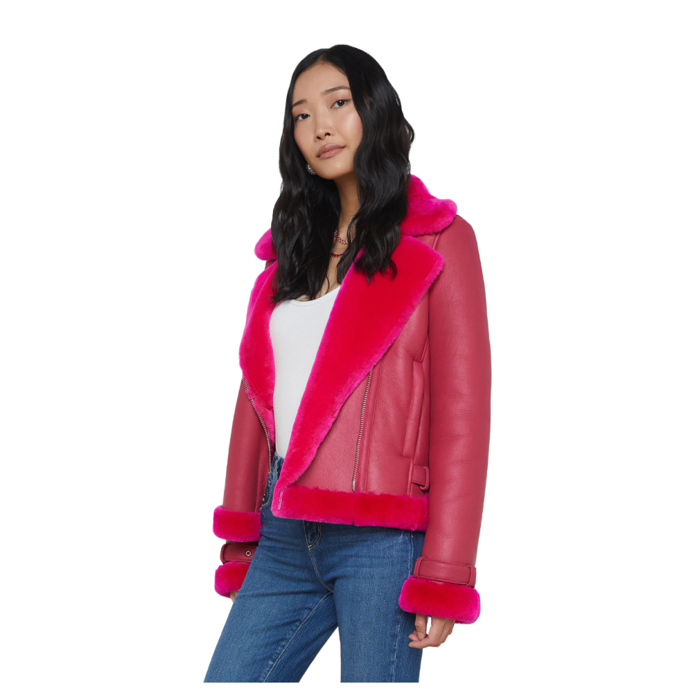 Women’s Fashion Stylish Niri Shearling Pink Leather Jacket