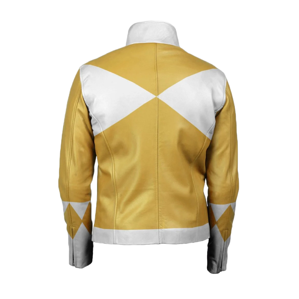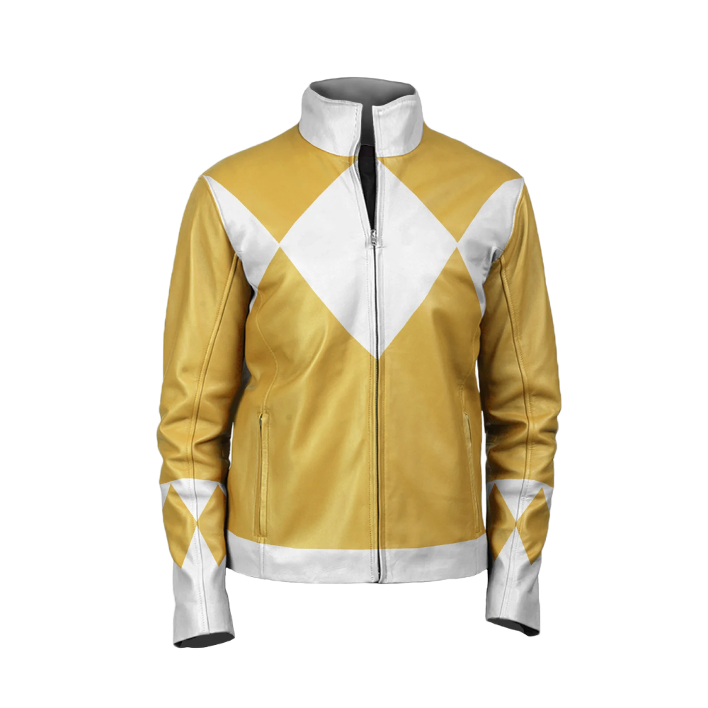 Unleash your inner superhero with this Women’s Stylish Power Rangers Classic Yellow Leather Jacket! Inspired by the legendary Mighty Morphin’ Power Rangers, this vibrant yellow leather jacket is designed for fans who love bold fashion and nostalgic style. Made from premium-quality genuine leather, it offers a sleek fit, durability, and ultimate comfort. The signature Power Rangers design, featuring white diamond patterns, makes this jacket a standout piece for cosplay, streetwear, or casual outings.