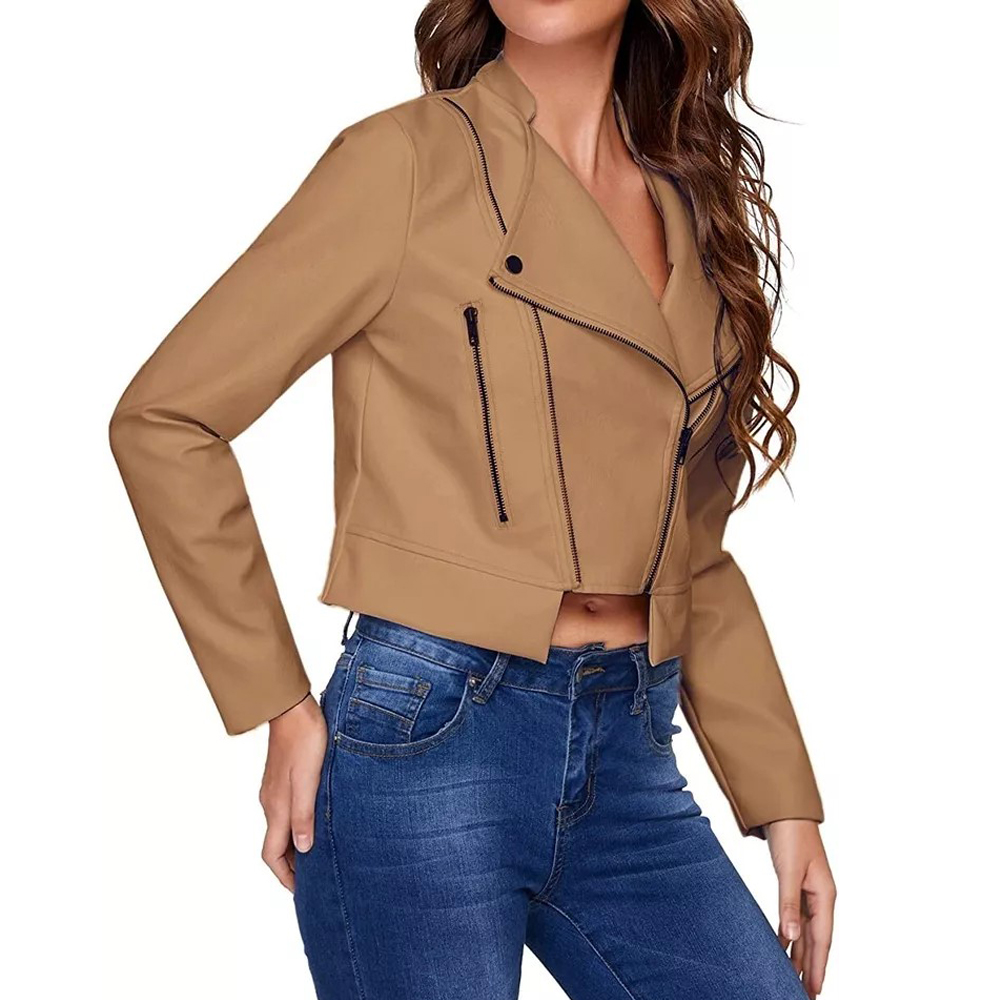 Women’s Genuine Lambskin Leather Crop Jacket – Slim Fit Biker Coat