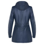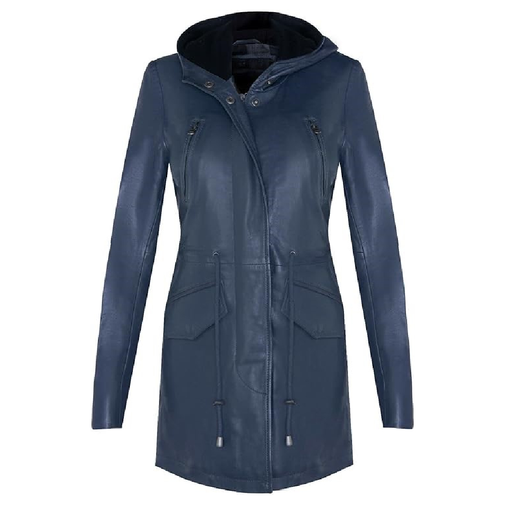 Women’s Leather Parka Jacket – Quilted Detachable Hooded Trench Coat Navy Blue