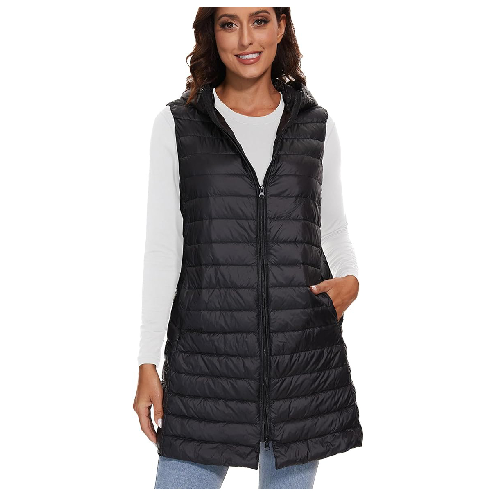 Women’s Lightweight Down Vest With Hooded Winter Long Puffer Vest Jacket