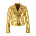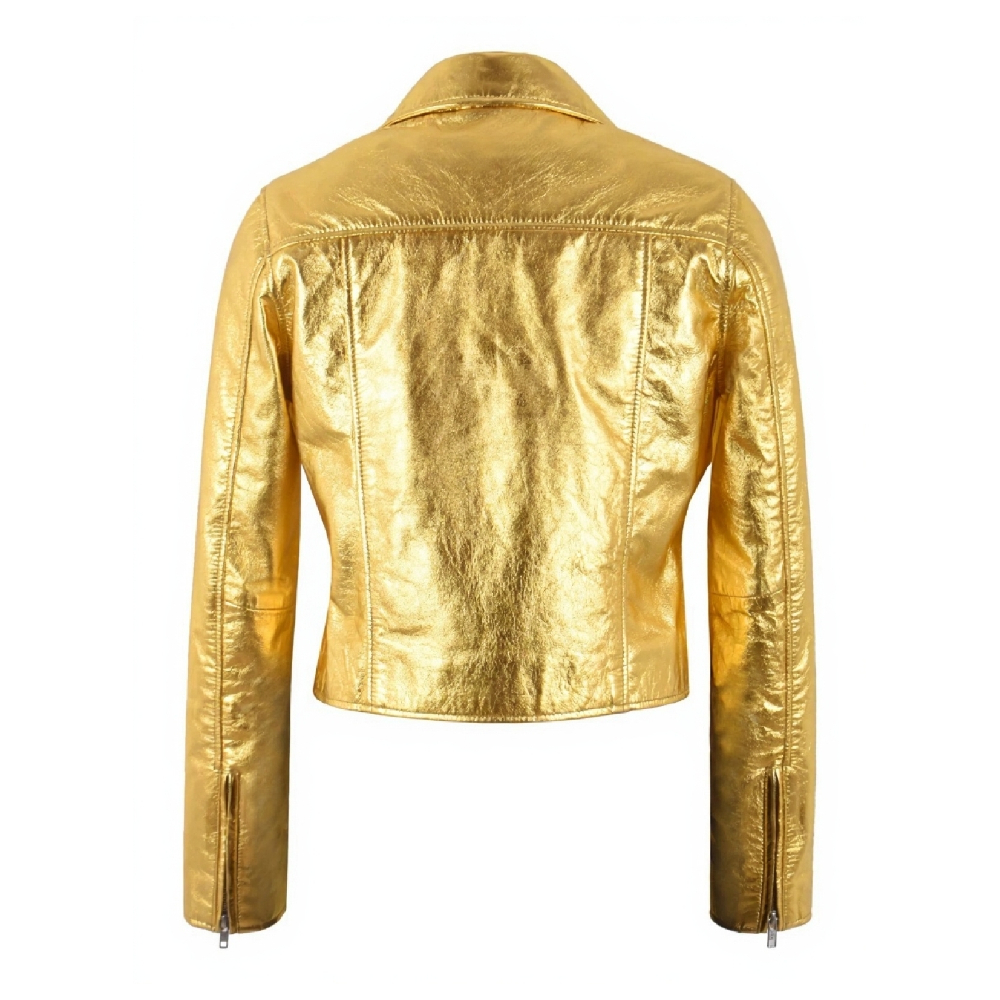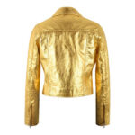 Women’s Metallic Gold Lambskin Leather Biker Jacket – Shiny Moto Style