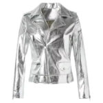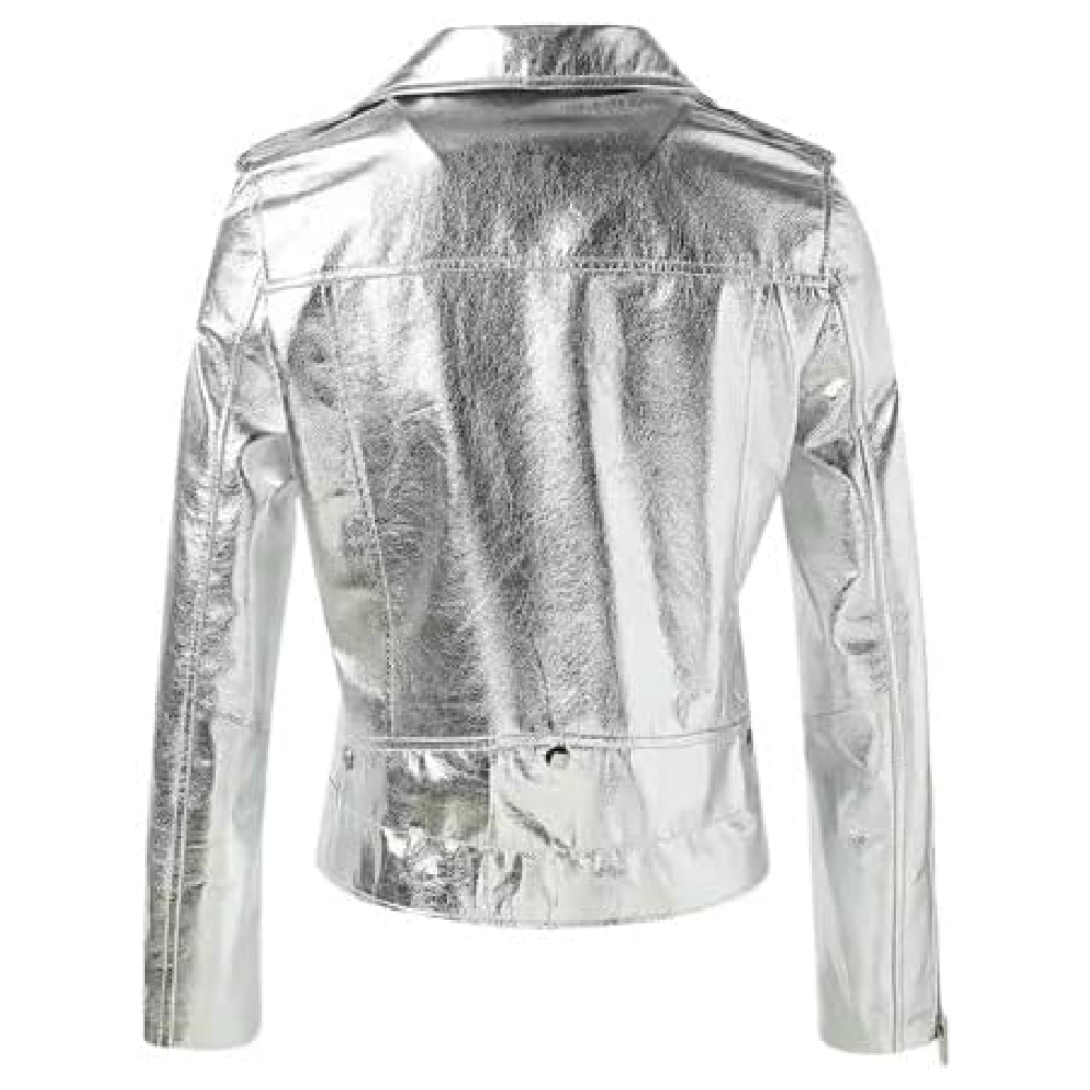 Women’s Metallic Silver Lambskin Leather Biker Jacket – Shiny Moto Chic