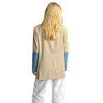 Home ALL WOMEN'S JACKETS Leather Coat Women’s Oversized Beige Blazer Coat – Denim Patchwork Accents