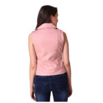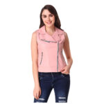 Women’s Pink Leather Sleeveless Vest Jacket – Biker Style