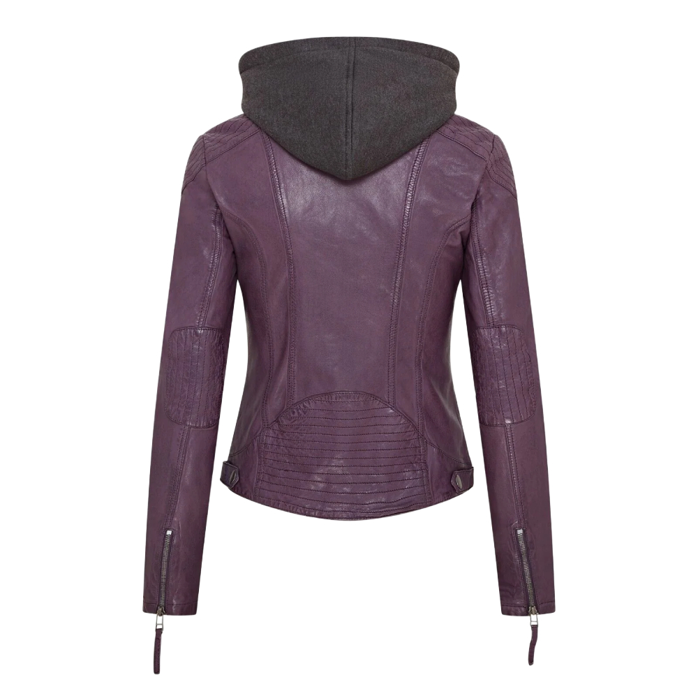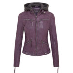 Be the first to review “Women’s Plum Purple Faux Leather Hooded Biker Jacket” Cancel reply