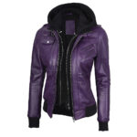 Be the first to review “Women’s Purple Faux Leather Hooded Bomber Moto Jacket” Cancel reply
