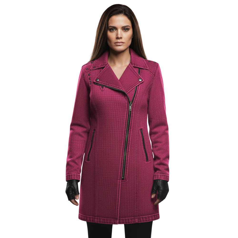 Unleash your inner fire with the Women’s Red Hydra Dragon Quilted Long Denim Coat. This bold streetwear piece features a rich burgundy textured denim exterior with quilted detailing, giving it a rugged yet stylish biker-inspired look. The standout triple-headed, fire-breathing hydra dragon embroidered on the back commands attention, making this coat a true statement piece. Designed for both comfort and impact, it’s perfect for women who want to combine edgy fantasy motifs with modern streetwear style.