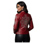 Women’s Red Snowflake Christmas Biker Leather Jacket