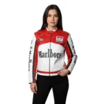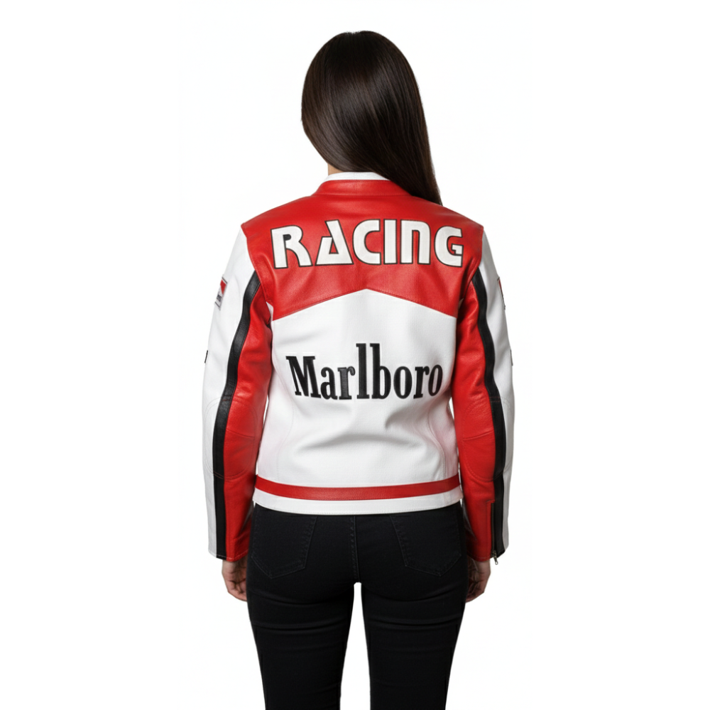 Ignite your style with the Women’s Red & White Racing-Inspired Leather Jacket — a dynamic blend of sporty attitude and street-ready fashion. Bold red panels paired with crisp white accents create a racing-inspired look that turns heads while delivering a comfortable, tailored fit for everyday wear.