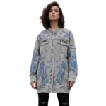 - Oversized grey denim jacket for a relaxed, street-ready fit