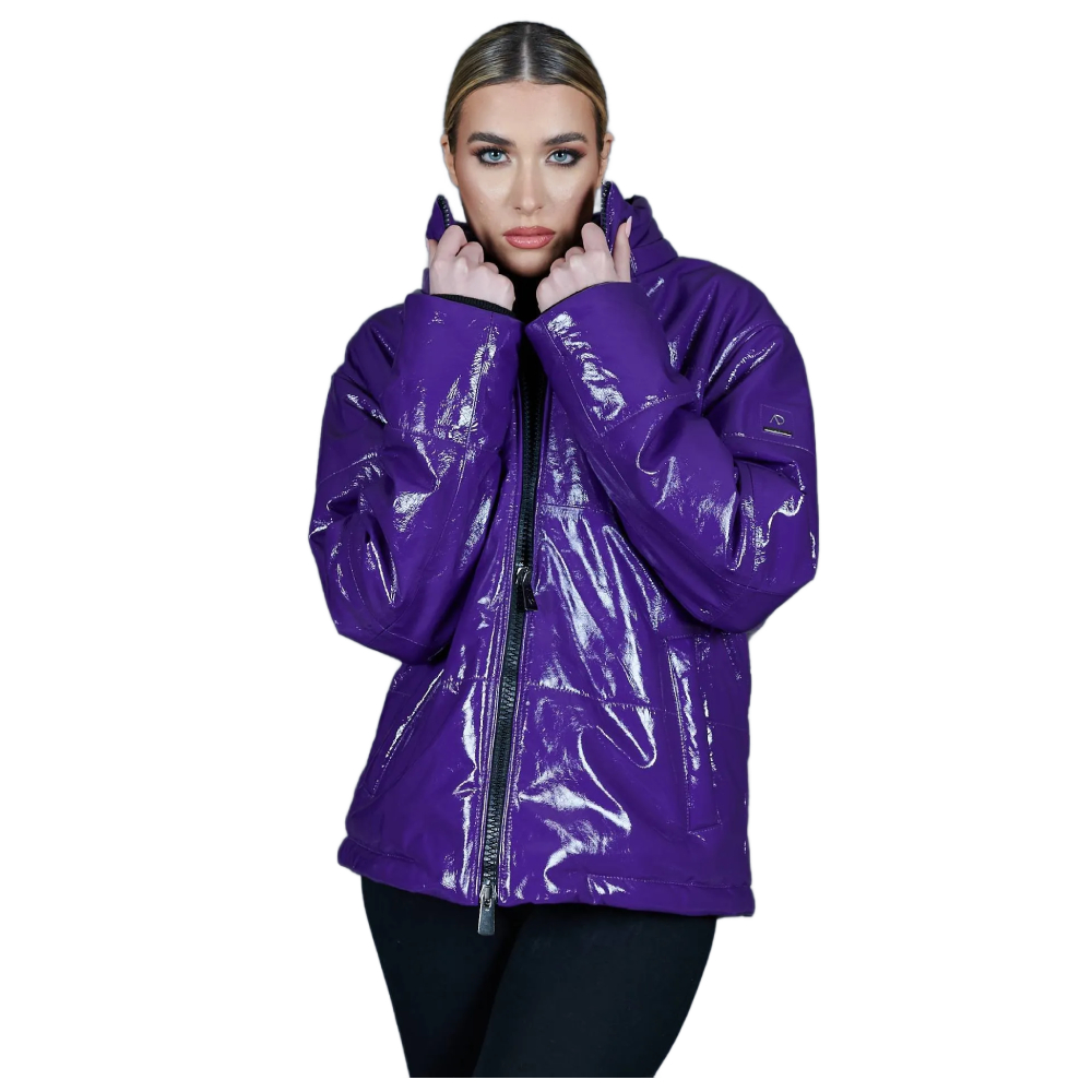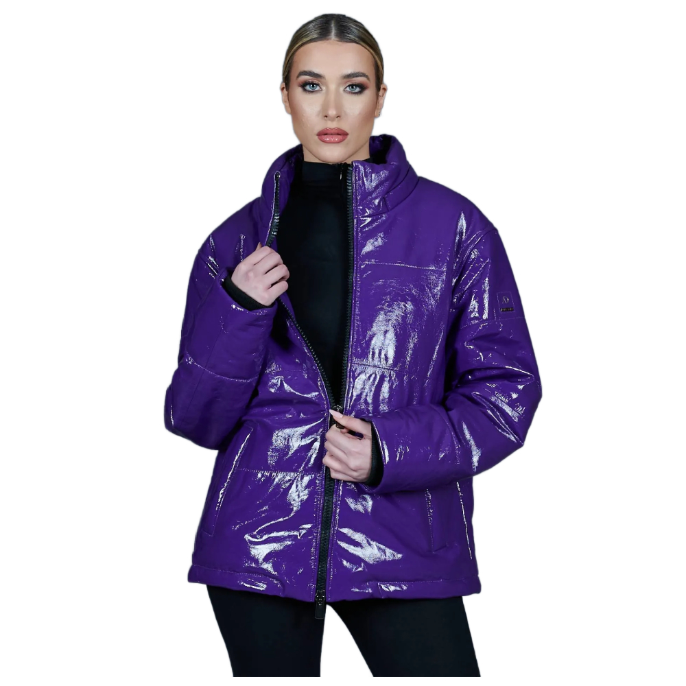 Women’s Violet Puffer Laminated Leather Jacket – Oversized Version