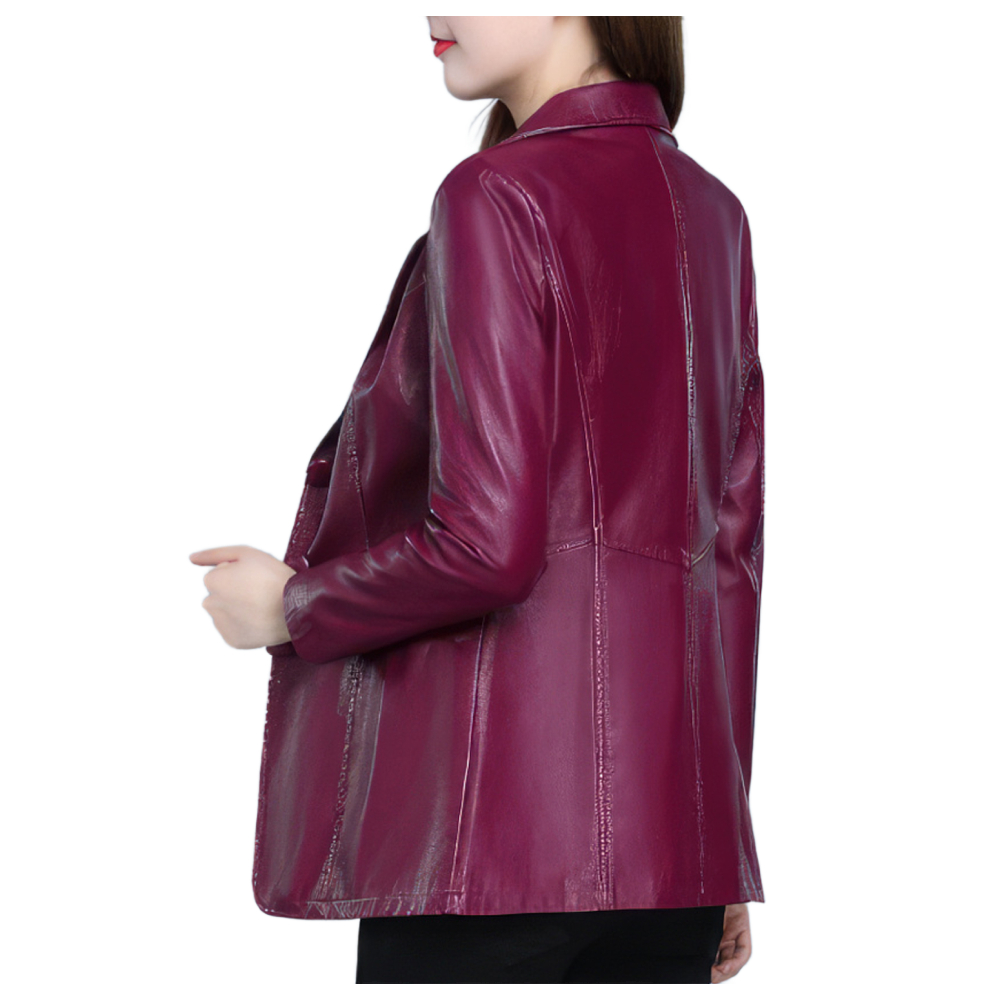 Women’s Wine Red Genuine Sheepskin Leather Coat – Slim Fit Korean Fashion