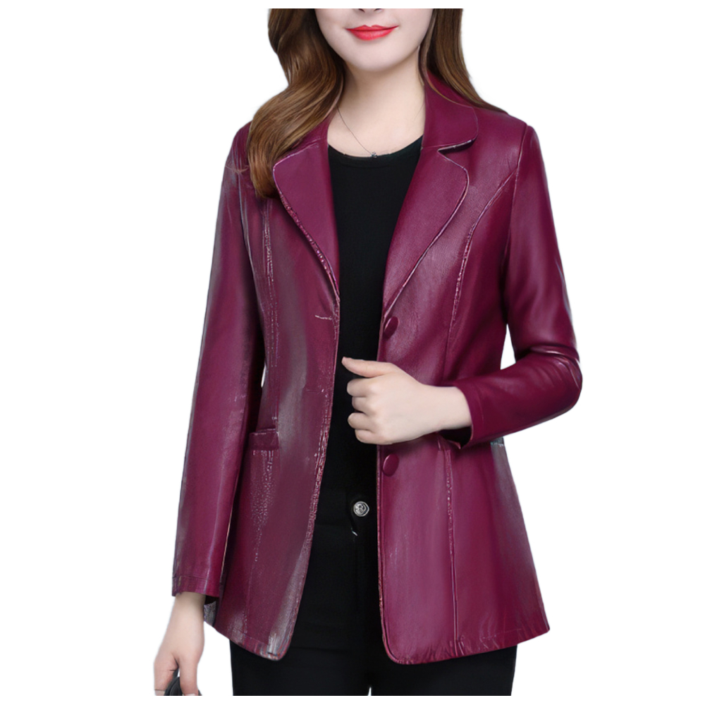 Home ALL WOMEN'S JACKETS Leather Coat Women’s Wine Red Genuine Sheepskin Leather Coat – Slim Fit Korean Fashion